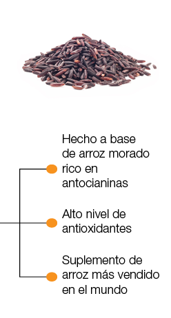 Este tipo de arroz, procesado con tecnología exclusiva de ENZACTA, se caracteriza por su aroma a nuez, textura arrugada y sobre todo por su color, derivado del alto nivel de antocianinas que contiene (pigmento que le da tono a frutas y verduras como las berenjenas, bayas, uvas, arándano, etcétera). “Investigadores de la Universidad Estatal de Louisiana en Estados Unidos, descubrieron que el arroz morado tiene propiedades antioxidantes”, capaces de eliminar moléculas perjudiciales para el cuerpo. Investigadores del Departamento de Ciencia Alimentaria del Centro de Agricultura de la Universidad de Luisiana, bajo la dirección de Zhimin Xu, estudiaron muestras del salvado de arroz morado, descubriendo que este tipo de arroz, además de contener grandes cantidades de antocianinas antioxidantes, es muy nutritivo, rico en proteínas, minerales y diversos nutrientes. Zhimin Xu señala por ejemplo, que una cucharada de salvado de arroz morado, aporta más antocianinas antioxidantes que una de arándanos.